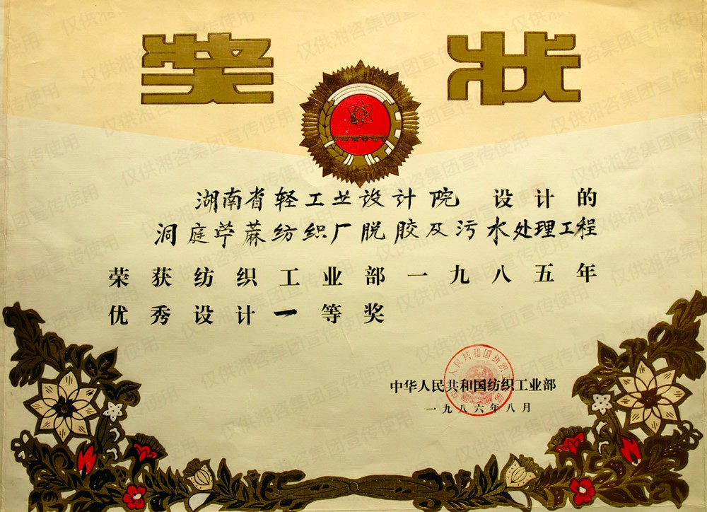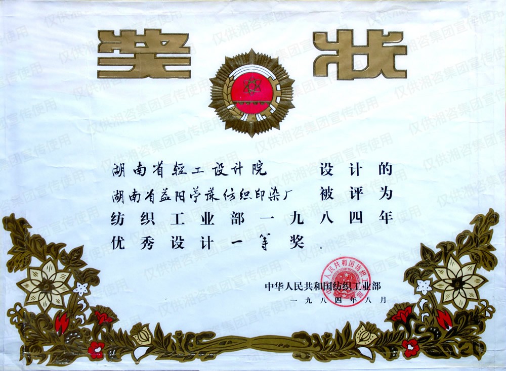 國家紡織工業(yè)部優(yōu)秀設(shè)計(jì)一等獎