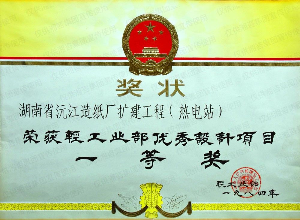 國家輕工部優(yōu)秀設(shè)計(jì)項(xiàng)目一等獎