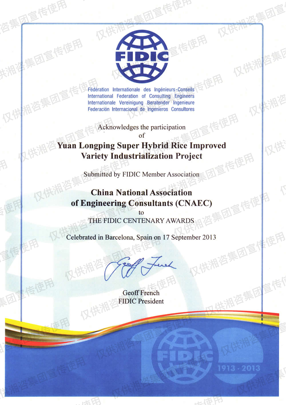FIDIC百年工程項(xiàng)目紀(jì)念獎