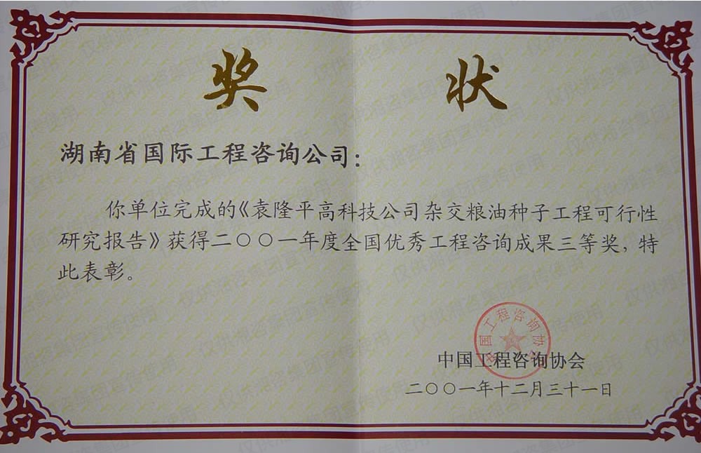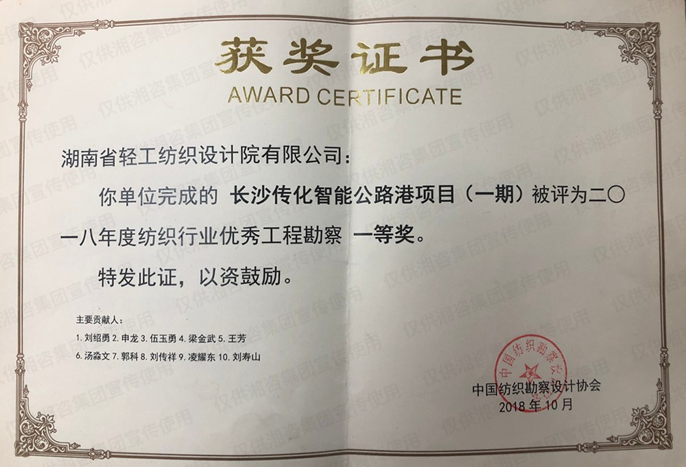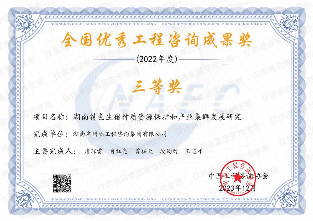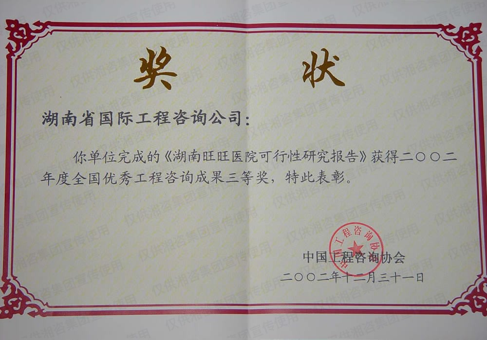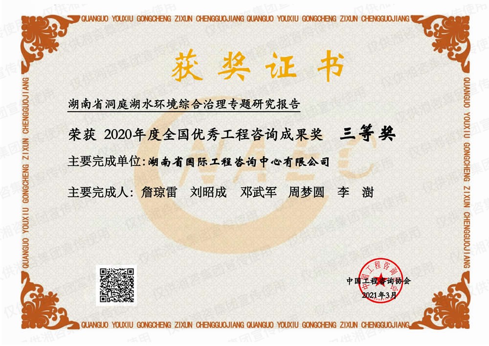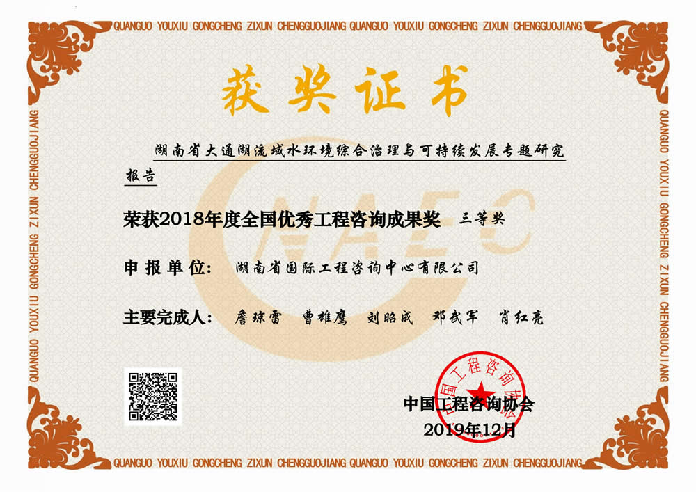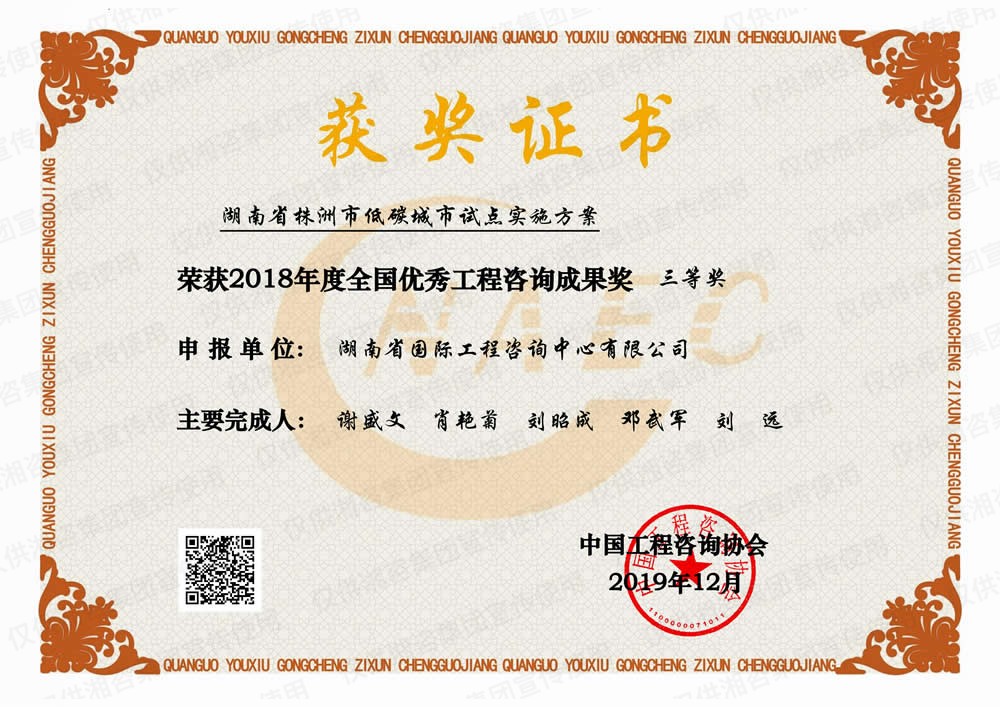 湖南省優(yōu)秀工程咨詢成果一等獎