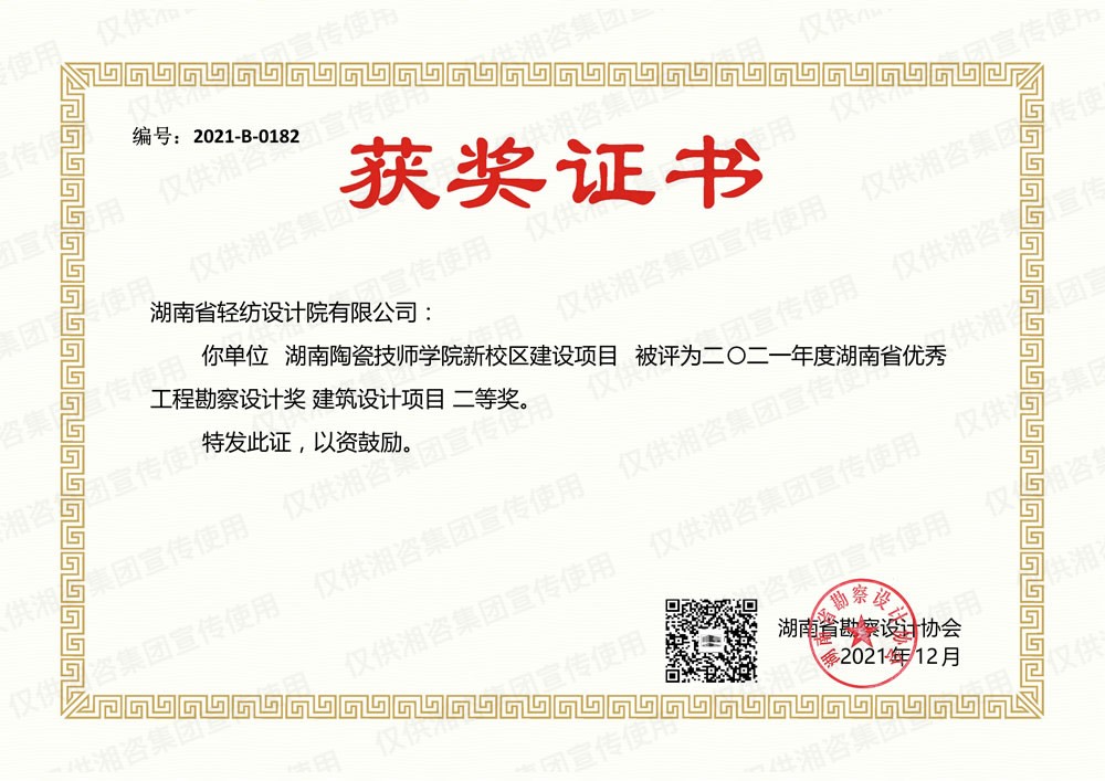 湖南省勘察設(shè)計(jì)協(xié)會優(yōu)秀工程勘察設(shè)計(jì)二等獎
