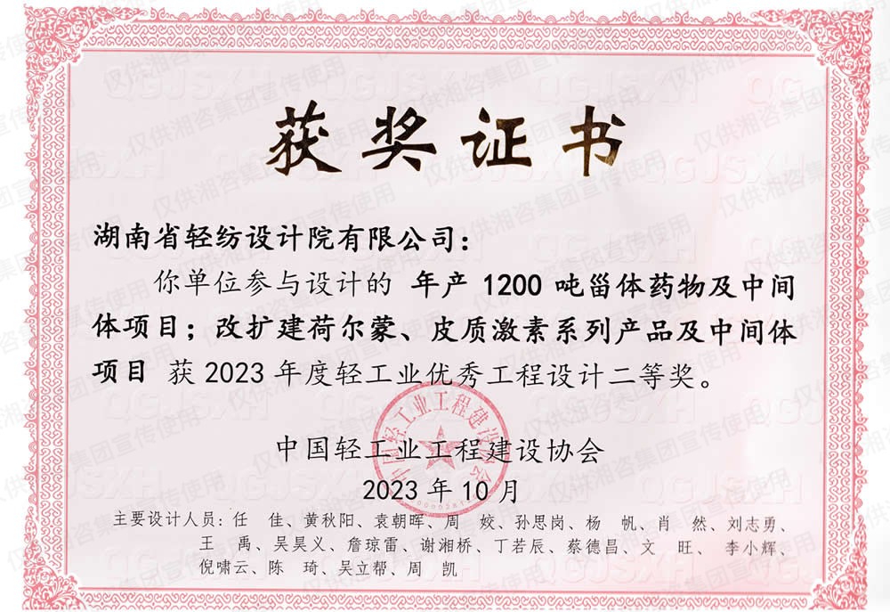 中國輕工業(yè)工程建設(shè)協(xié)會優(yōu)秀工程設(shè)計(jì)二等獎