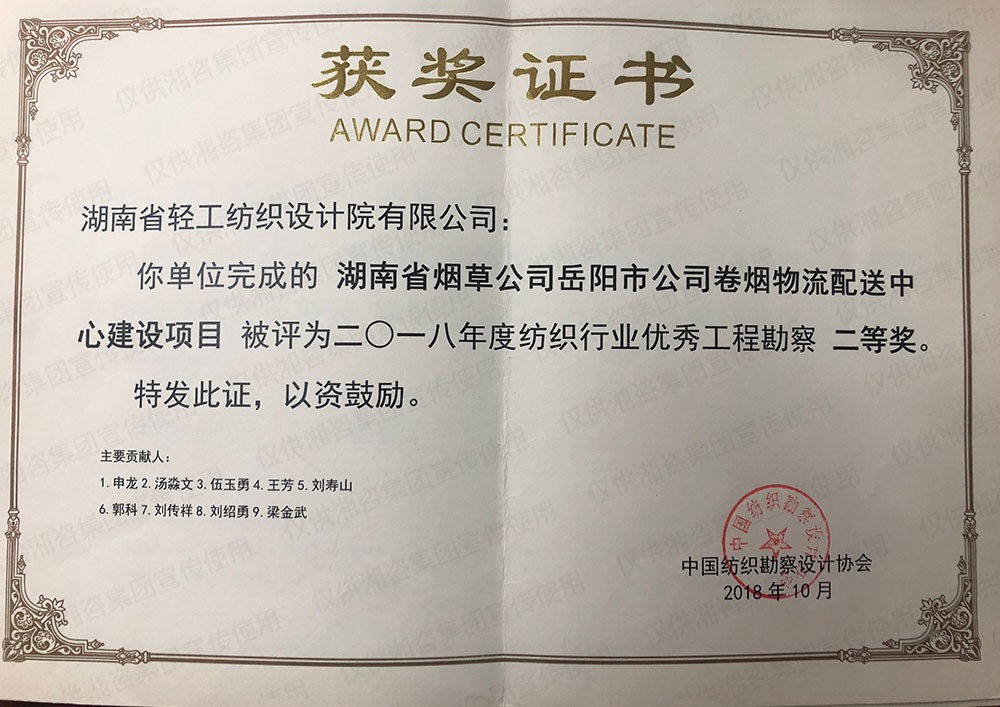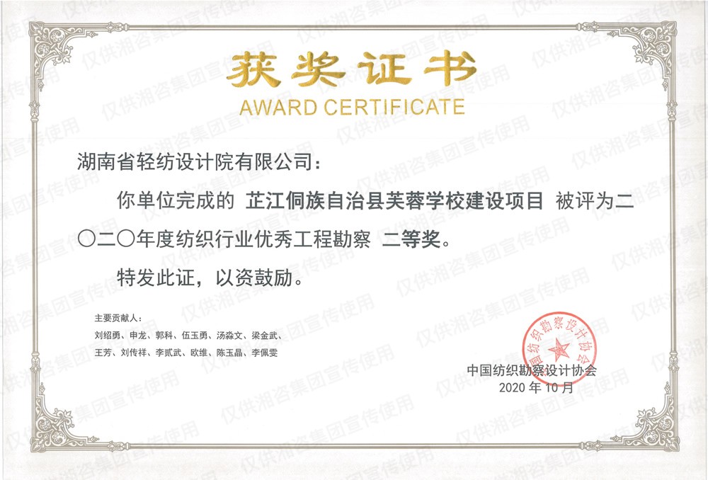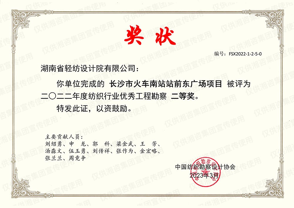 湖南省優(yōu)秀工程勘察設(shè)計(jì)二等獎