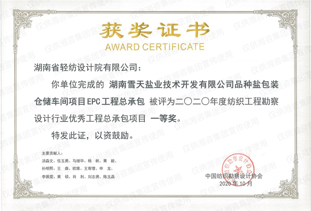 中國紡織勘察設(shè)計(jì)協(xié)會優(yōu)秀工程總承包項(xiàng)目一等獎