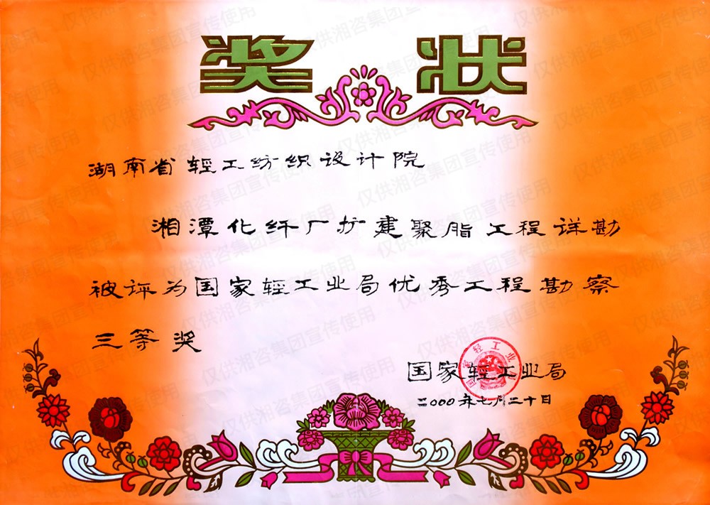國家輕工業(yè)局優(yōu)秀勘察三等獎