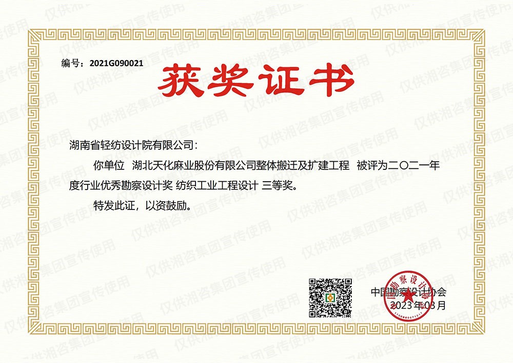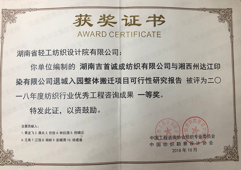 中國紡織勘察設(shè)計(jì)協(xié)會優(yōu)秀工程咨詢成果一等獎