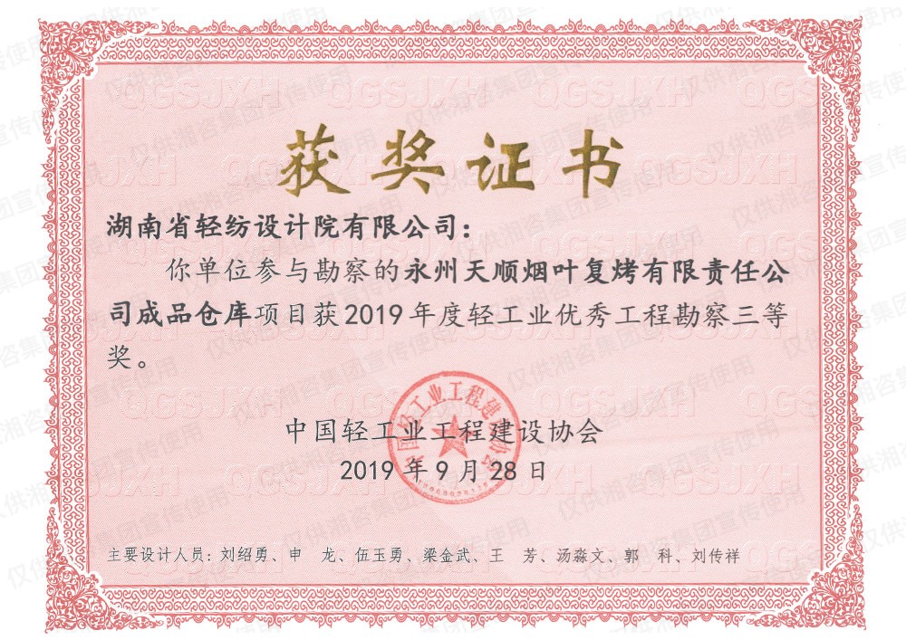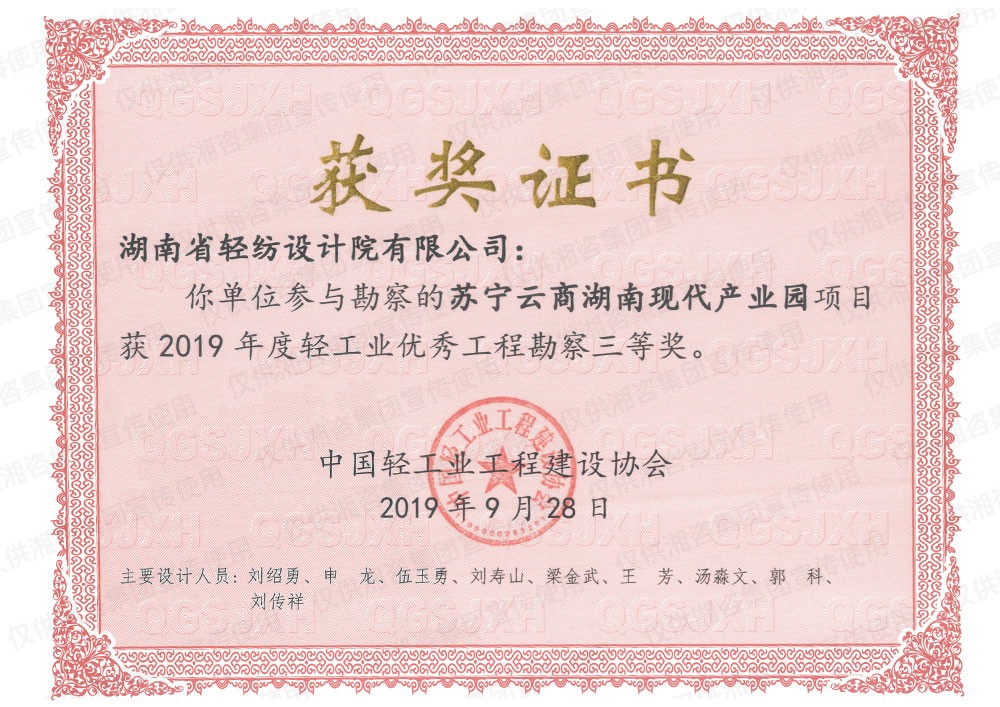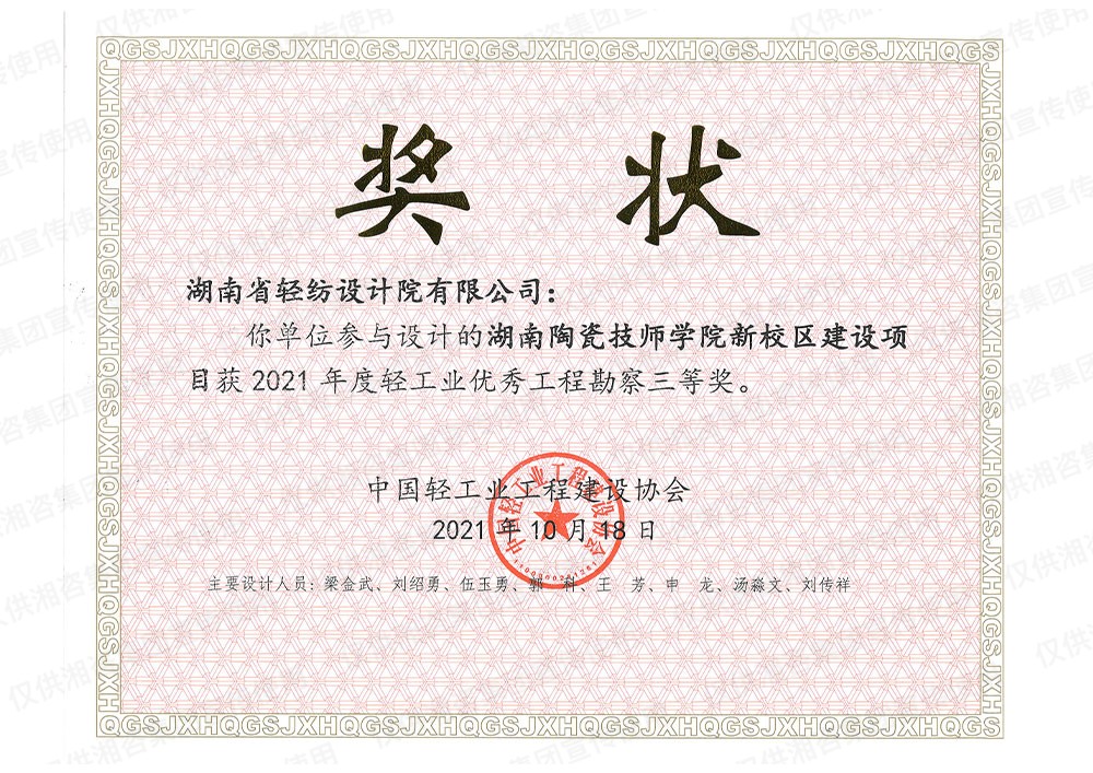 中國輕工業(yè)工程建設(shè)協(xié)會優(yōu)秀工程勘察三等獎