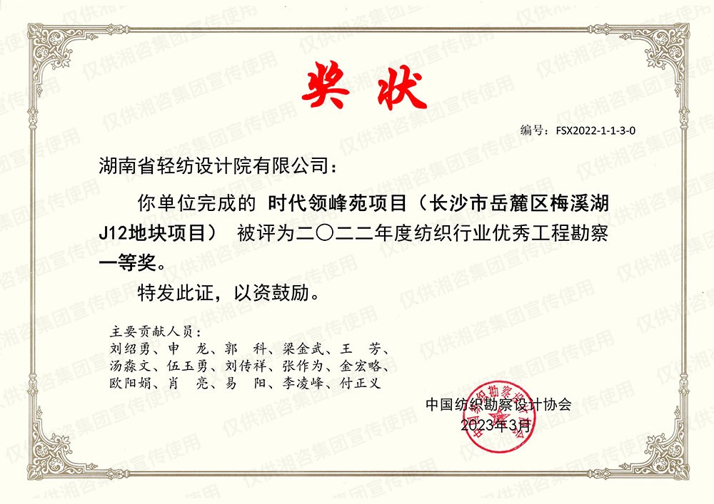 中國紡織勘察設(shè)計(jì)協(xié)會優(yōu)秀工程勘察一等獎