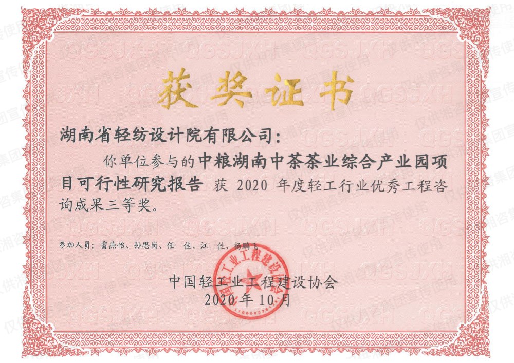 中國輕工業(yè)工程建設(shè)協(xié)會優(yōu)秀工程咨詢成果三等獎