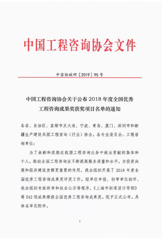 12月27日,中國工程咨詢協(xié)會(huì)官網(wǎng)公布了“2018年度全國優(yōu)秀工程咨詢成果獎(jiǎng)獲獎(jiǎng)項(xiàng)目名單”,省咨詢公司共有3項(xiàng)工程咨詢成果榮獲全國優(yōu)秀工程咨詢成果獎(jiǎng)。
