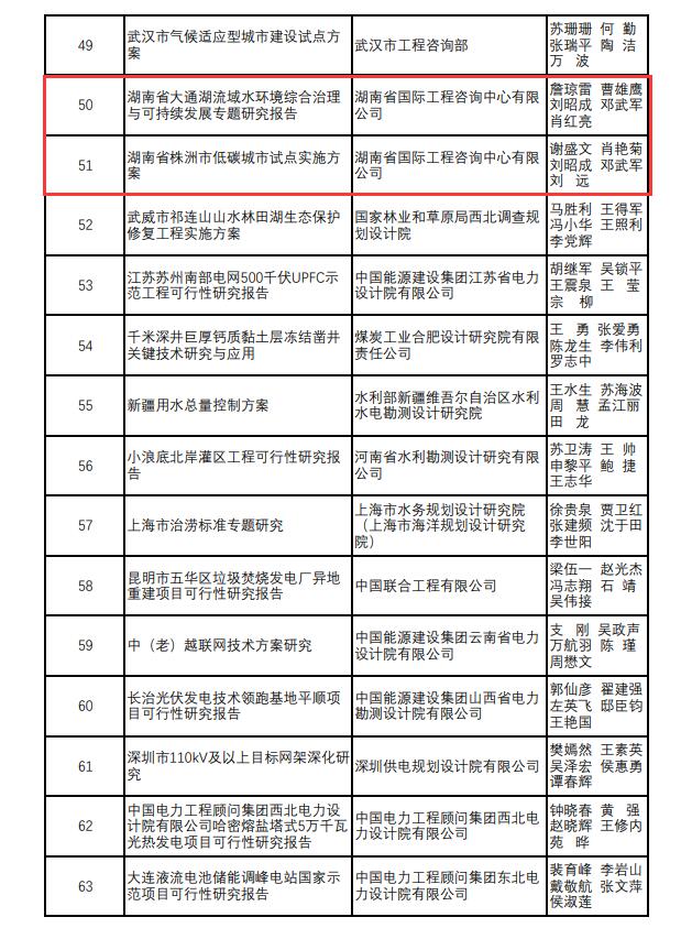 中國工程咨詢協(xié)會(huì)組織的“全國優(yōu)秀工程咨詢成果獎(jiǎng)”是工程咨詢行業(yè)含金量最高的獎(jiǎng)項(xiàng),每兩年評(píng)選一次。此次參與申報(bào)評(píng)獎(jiǎng)的工程咨詢單位來自全國各行各業(yè),大部分為實(shí)力雄厚的國家級(jí)和省級(jí)工程咨詢單位。申報(bào)咨詢成果經(jīng)層層評(píng)選后確定一等獎(jiǎng)113項(xiàng)、二等獎(jiǎng)166項(xiàng)、三等獎(jiǎng)210項(xiàng)、優(yōu)秀獎(jiǎng)53項(xiàng)。湖南省咨詢單位本次共獲二等獎(jiǎng)4項(xiàng)、三等獎(jiǎng)5項(xiàng)。省咨詢公司作為湖南省內(nèi)唯一的綜合甲級(jí)資信單位,獲得了其中的3項(xiàng),占湖南省咨詢單位獲獎(jiǎng)項(xiàng)目總數(shù)的三分之一。
