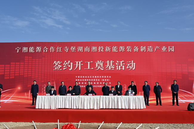 建設(shè)湖南新能源裝備制造產(chǎn)業(yè)園是落實湘寧兩省聯(lián)合推進寧湘特高壓直流工程戰(zhàn)略合作框架協(xié)議和能源合作備忘錄,共建“一線一園一基地”的重要舉措。紅寺堡湘投產(chǎn)業(yè)園由湘投集團統(tǒng)一組織規(guī)劃建設(shè),擬引進光伏電池及組件、儲能電池、制氫裝備等新能源裝備制造上下游產(chǎn)業(yè)鏈項目,目標成為“綠色、零碳、智慧、安全”的新能源裝備制造產(chǎn)業(yè)示范園,打造湖南在寧夏的能源“飛地”,加快“寧電入湘”工程“一基地”建設(shè)。