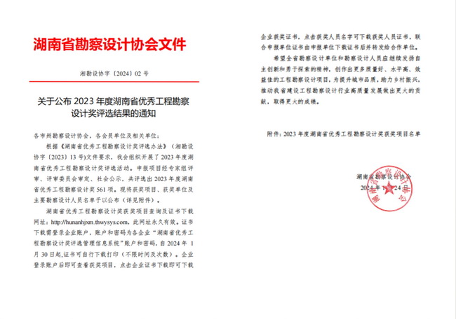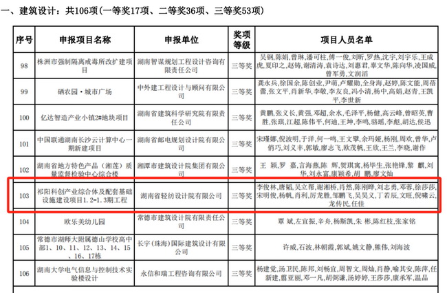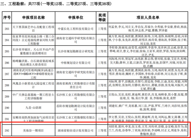 近期,省勘協(xié)公布了2023年度湖南省優(yōu)秀工程勘察設計獎評選結果,湘咨集團所屬省輕紡院共斬獲5項工程勘察設計獎。其中,寧鄉(xiāng)經(jīng)開區(qū)美妝谷一期項目、祁陽科創(chuàng)產(chǎn)業(yè)綜合體及配套基礎設施建設項目1.2-1.3期工程榮獲建筑設計獎;湖南中煙工業(yè)有限責任公司郴州卷煙廠易地技術改造項目榮獲工業(yè)設計獎;寧鄉(xiāng)經(jīng)開區(qū)美妝谷一期項目、長沙市火車南站區(qū)域排水改造工程榮獲工程勘察獎。