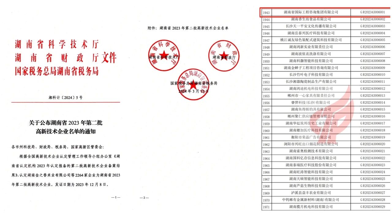 近日,湖南省科學(xué)技術(shù)廳、湖南省財(cái)政廳、國家稅務(wù)總局湖南省稅務(wù)局公布了湖南省2023年第二批高新技術(shù)企業(yè)名單,湘咨集團(tuán)再次榮獲“高新技術(shù)企業(yè)”稱號(hào)。